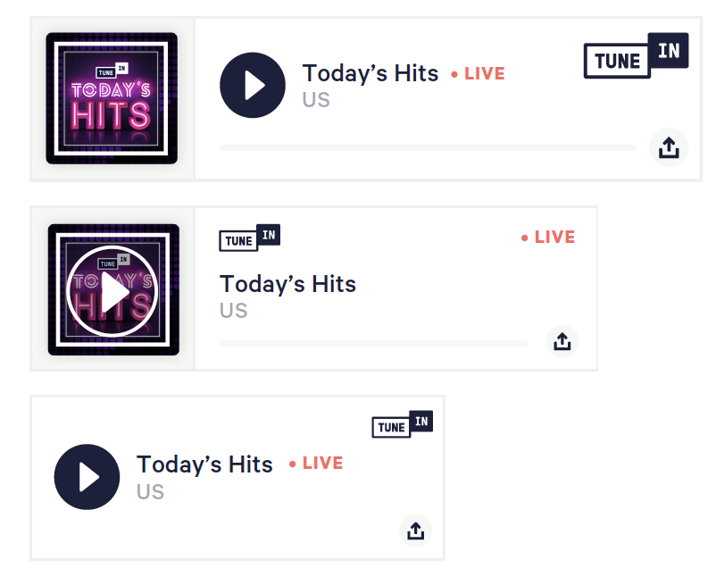 The TuneIn Embedded player is a great way to let your fans listen to your station or show on TuneIn directly from your website or blog.